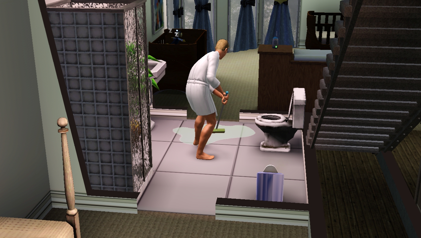 The toilet and TV are still broken. I really want Neal to roll some wants but his handiness trait just isn't working. :( That doesn't stop Neal from working on his want to potty train Nadia.